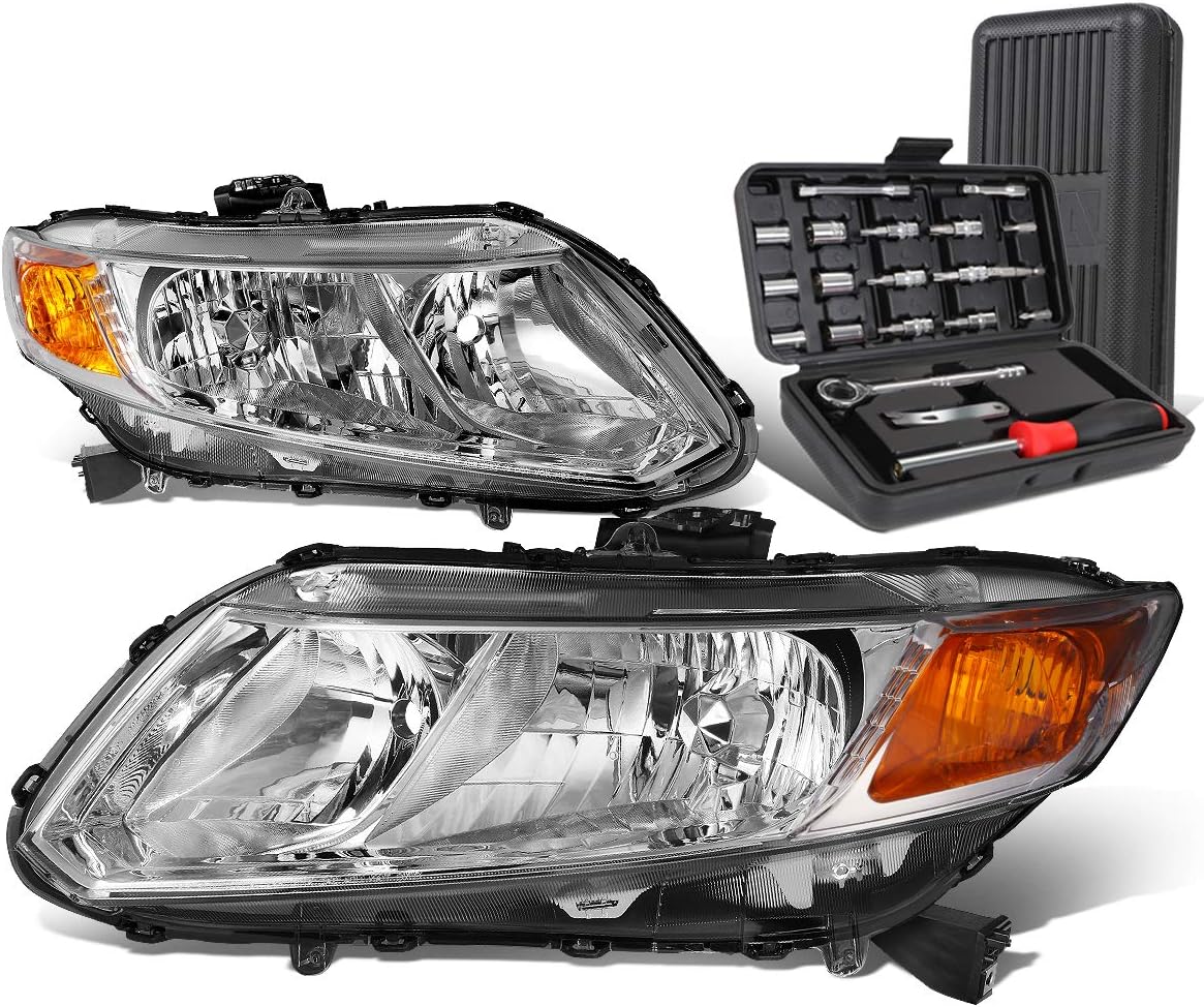 A headlight (headlamp) is a lamp attached to the front of a vehicle to light the road ahead. Headlight performance has steadily improved throughout the automobile age, spurred by the great disparity between daytime and nighttime traffic fatalities. Headlights are one of the most important components of your vehicle; they allow you to see the road in front of you clearly during the night and in any bad weather that may arise. Our headlights upgrade the face of your vehicle with clear style and extreme range.Package Included: 1 X Pair of Headlights (Left & Right)1 X 1/4" Drive Ratchet1 X 2" 1/4" Drive Extension1 X 3 1/4" Drive Extension1 X Bit Drive6-Piece Sockets : 7mm, 8mm, 9mm, 10mm, 11mm, 12mm 6-Piece 6-Point Star Torx Sockets : T10, T15, T25, T30, T35 2-Piece Philips & Standard Screw Driver Bits Trim Removal ToolBit extensionThis product is compatible with:Honda Civic Sedan 12-15 Coupe 12-13